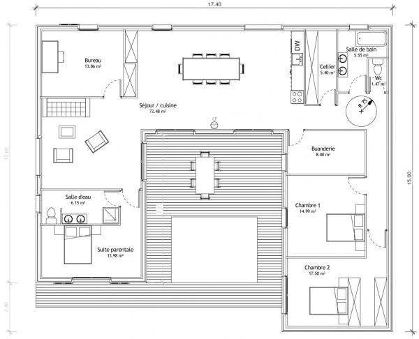 Plan maison en u